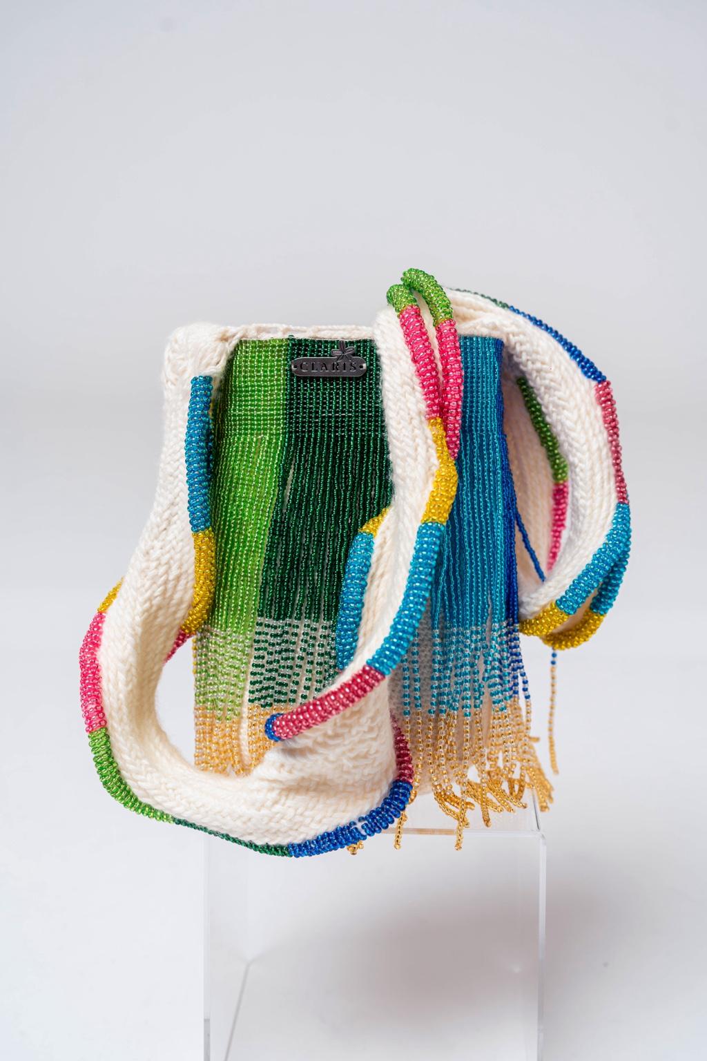 Discover the unparalleled elegance of the Kankuama bag! Crafted from alpaca wool and adorned with a dazzling cascade of multicolored beads, this bag exudes vibrant style and sophistication. It measures 8.2 inches in height and 7.8 inches in width.