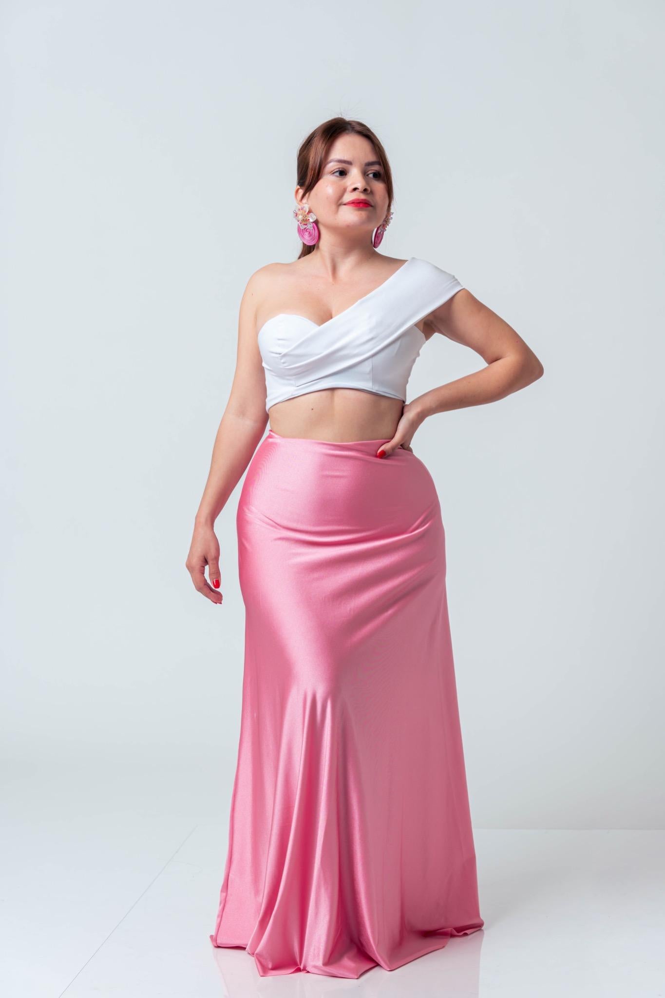 Elegant thread earrings in bright pink and white, adorned with white flowers and beads in lilac, gold, and fuchsia tones. These earrings combine delicacy and style, with each weighing approximately 12.24 grams.